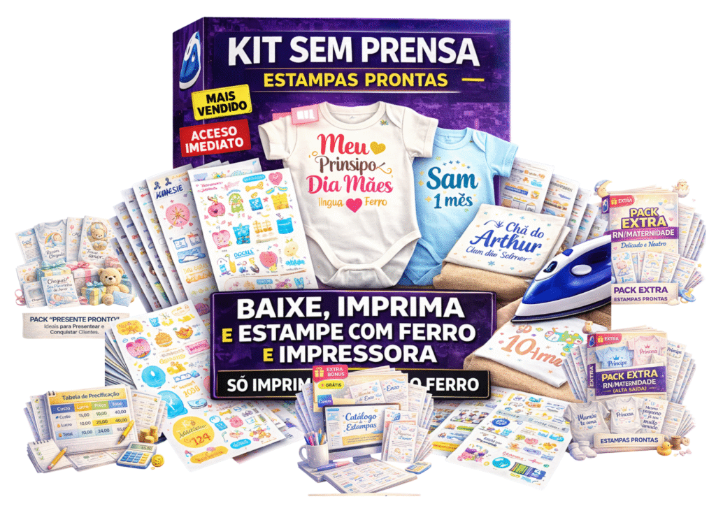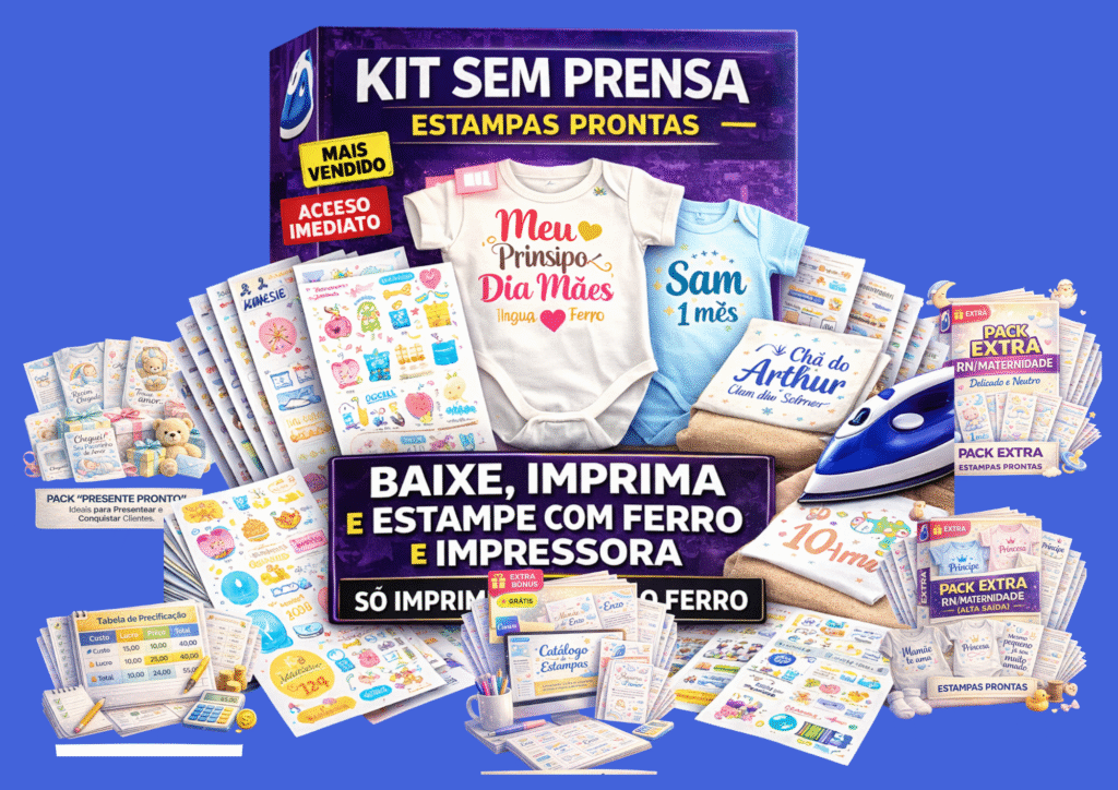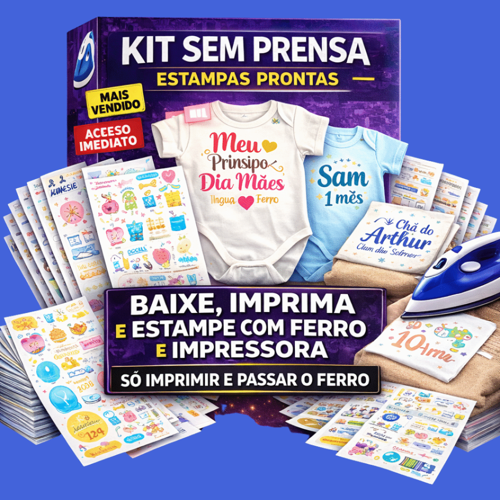 Você quer estampar em casa sem investir em prensa ou máquina cara. Aqui o processo é simples: baixar, imprimir e aplicar com ferro.