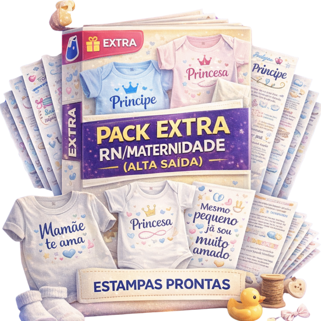Feito pra iniciantes que querem personalizar body, mijão e roupas infantis sem investir em prensa — com arquivos organizados + guia sem prensa + checklist anti-erro.