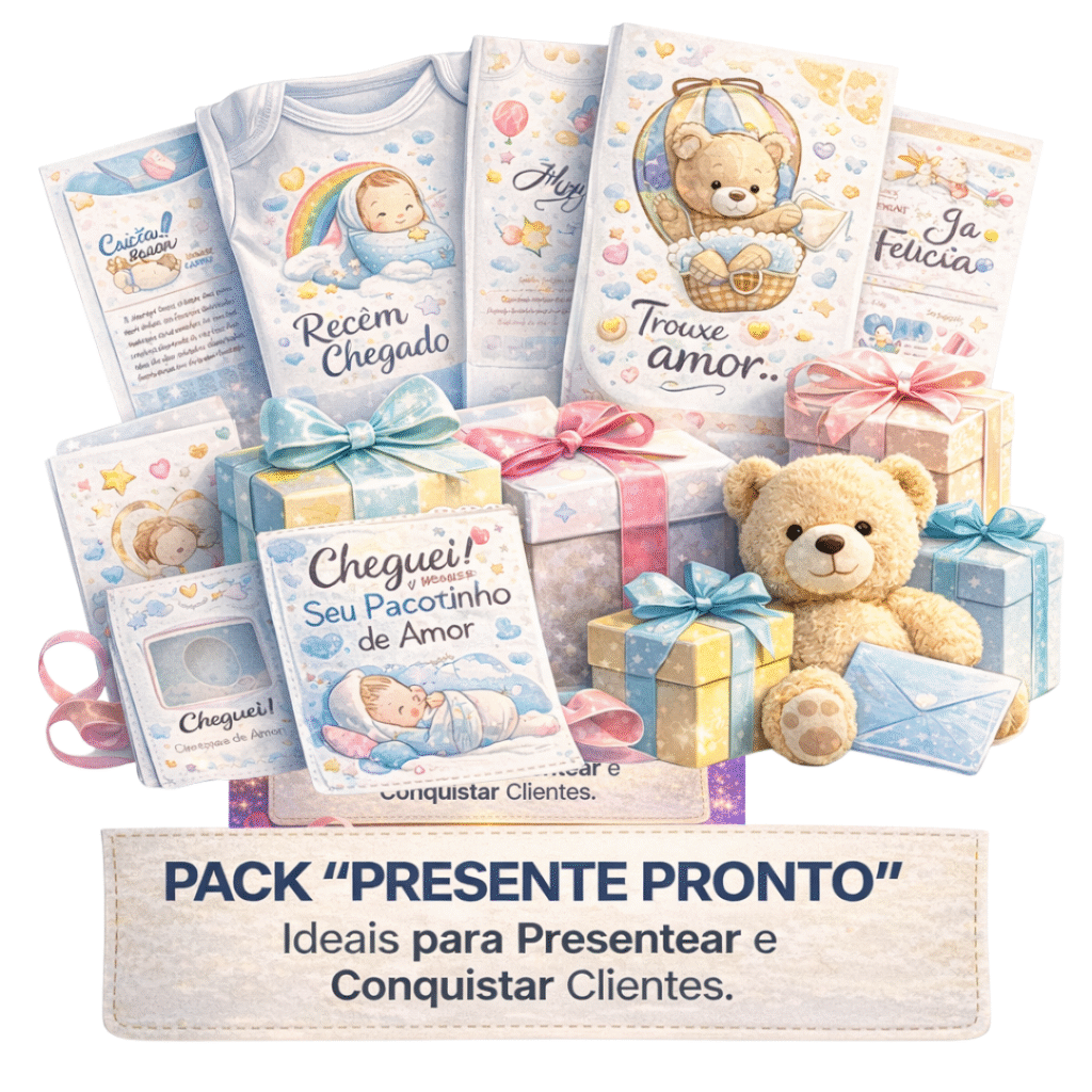 Estampas prontas focadas em recém-nascido, com cara de “produto premium”.